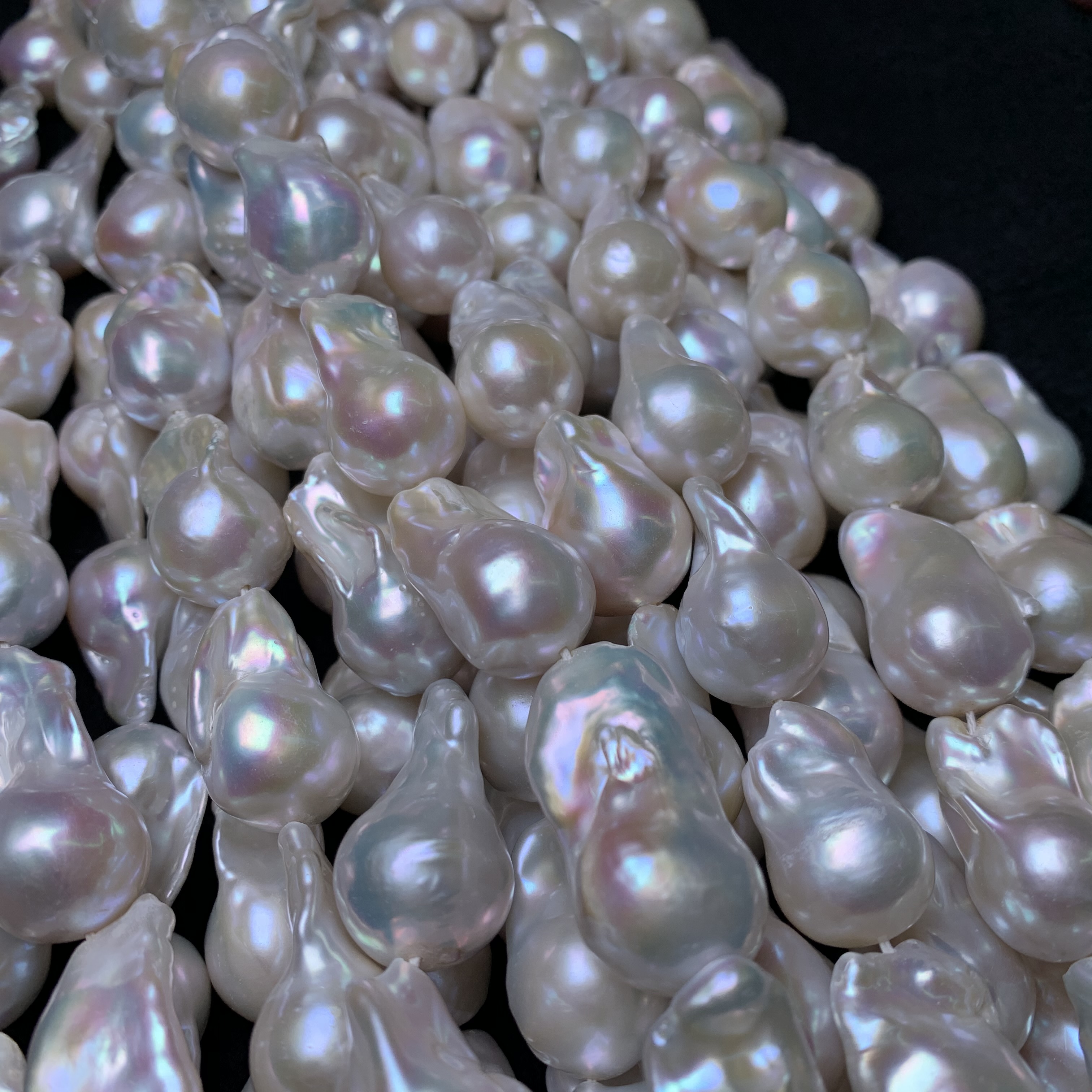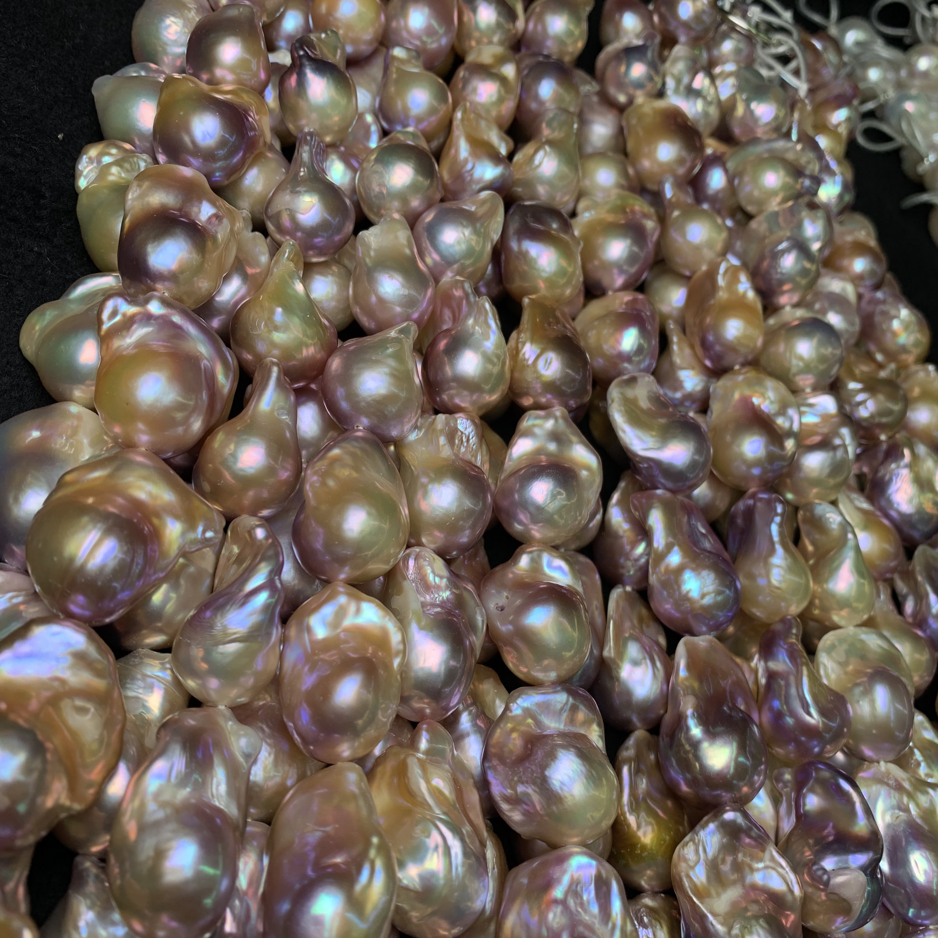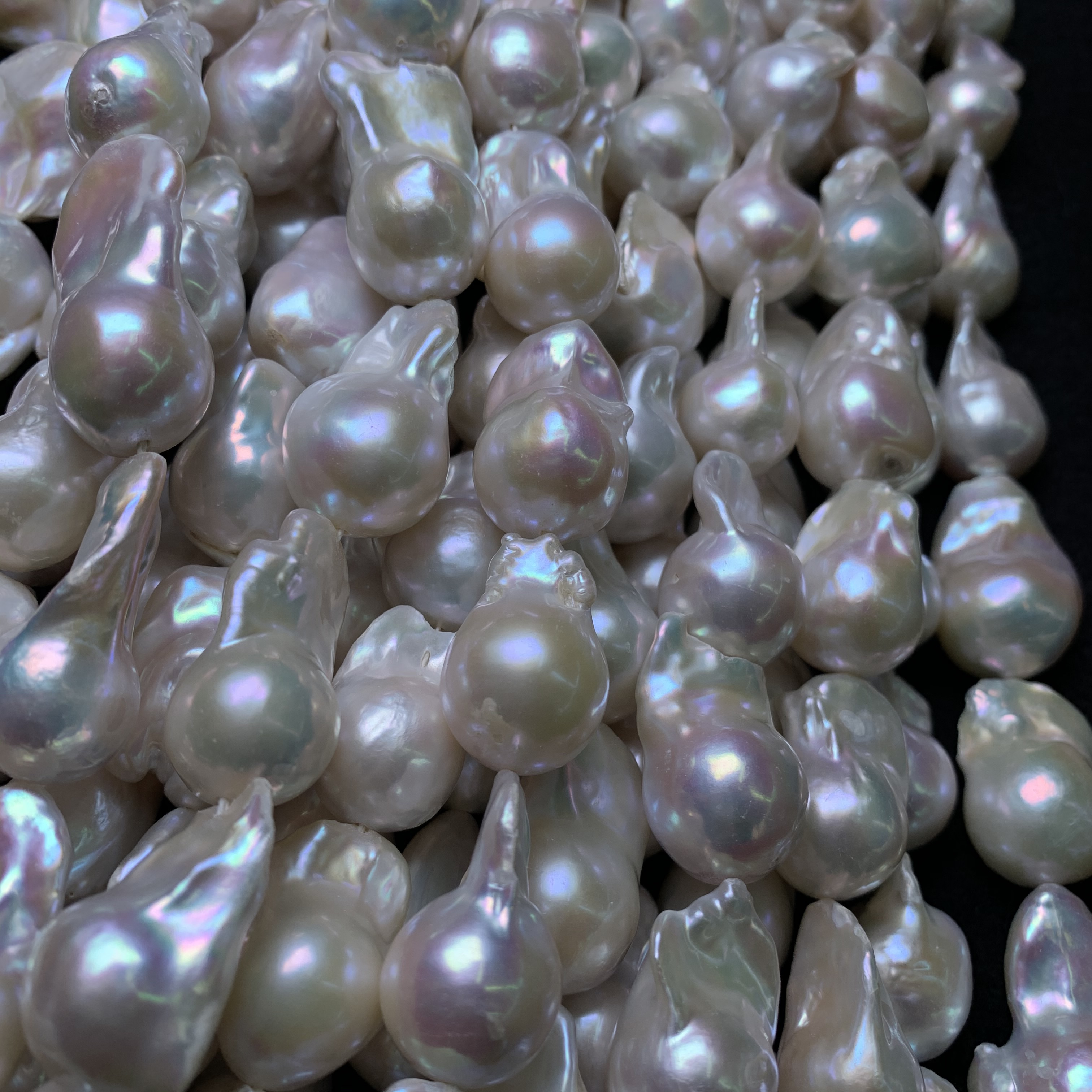 Big White 25-35mm Purple 30-45mm Top Quality Natural Freshwater Irregular Baroque Fireball Loose Pearls with Full Drilled Hole