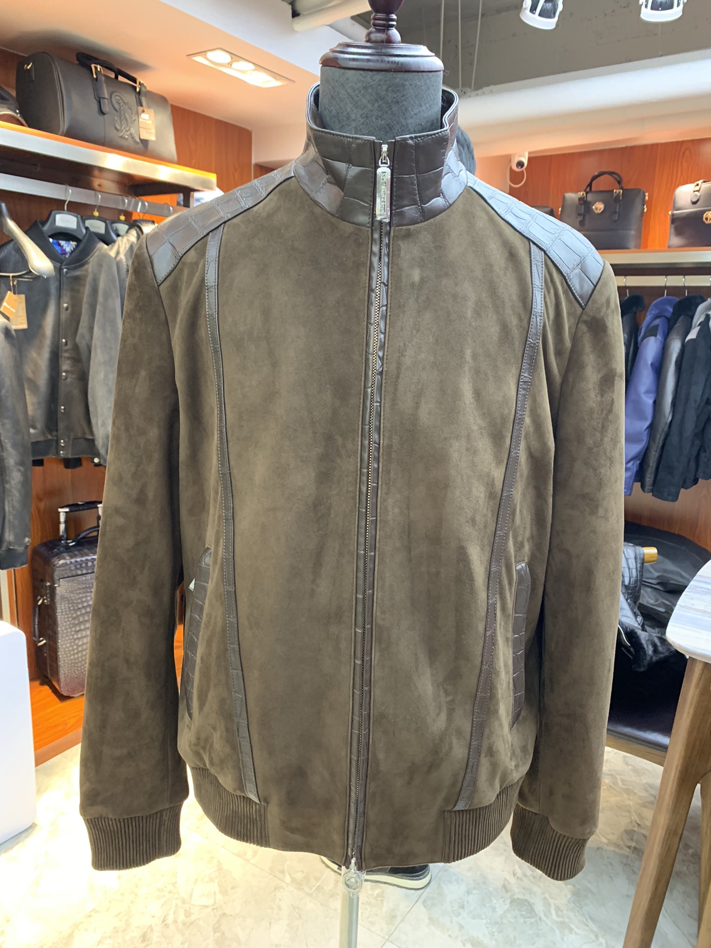 Luxury brand famous design crocodile genuine leather men's leather jacket hand-sewn factory custom top quality