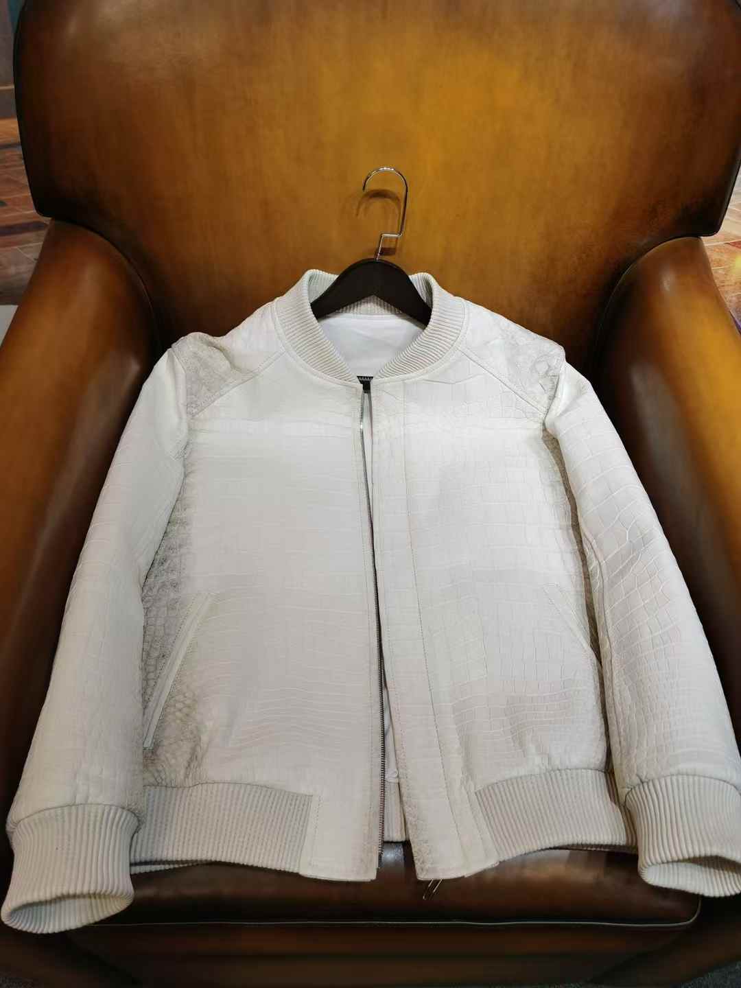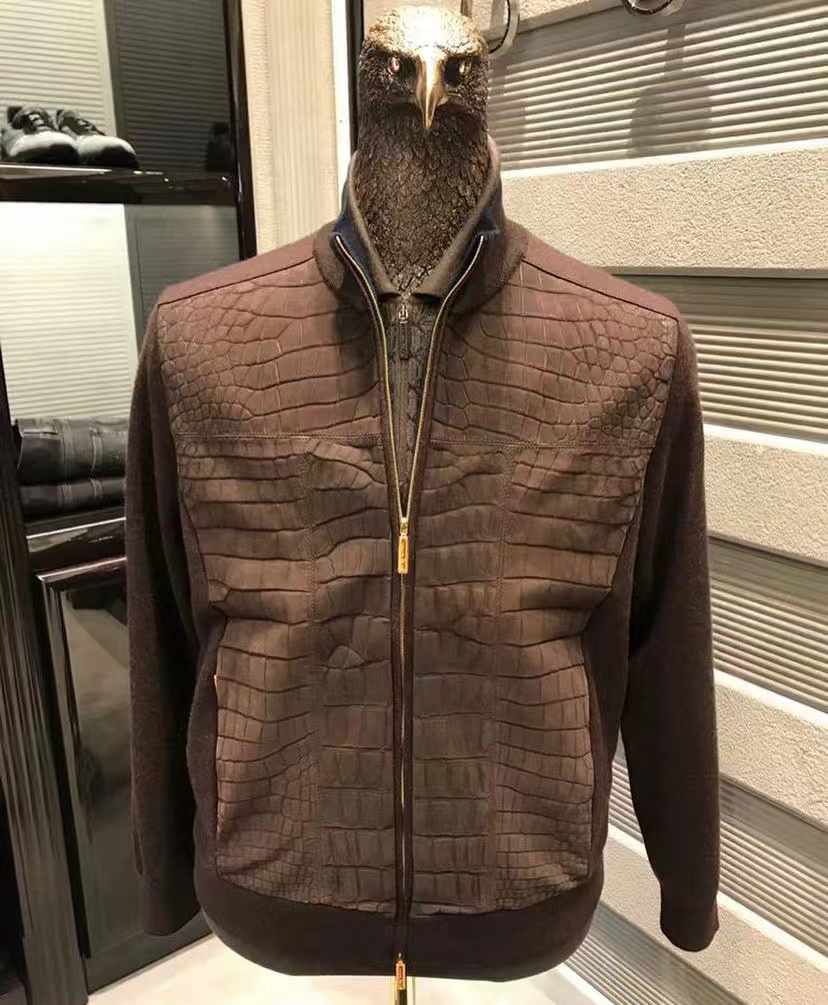 Luxury brand famous design real Himalayan crocodile genuine leather men's leather jacket hand-sewn factory custom top quality