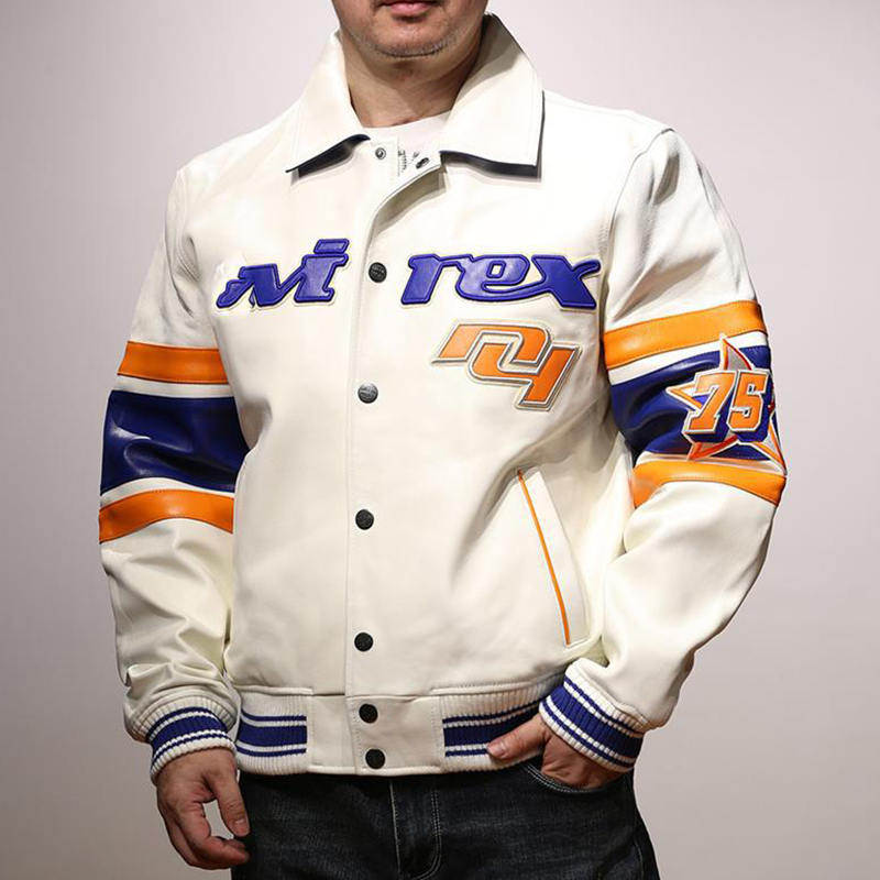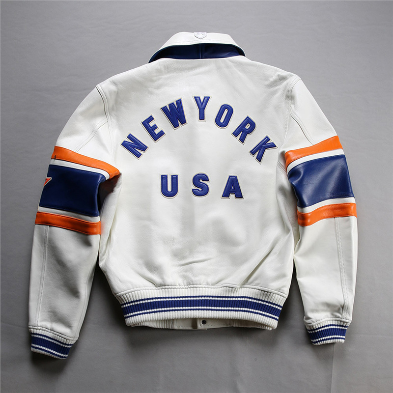 Men's 3D Printed Leather Jacket Knitted Elastic Hem and Collar