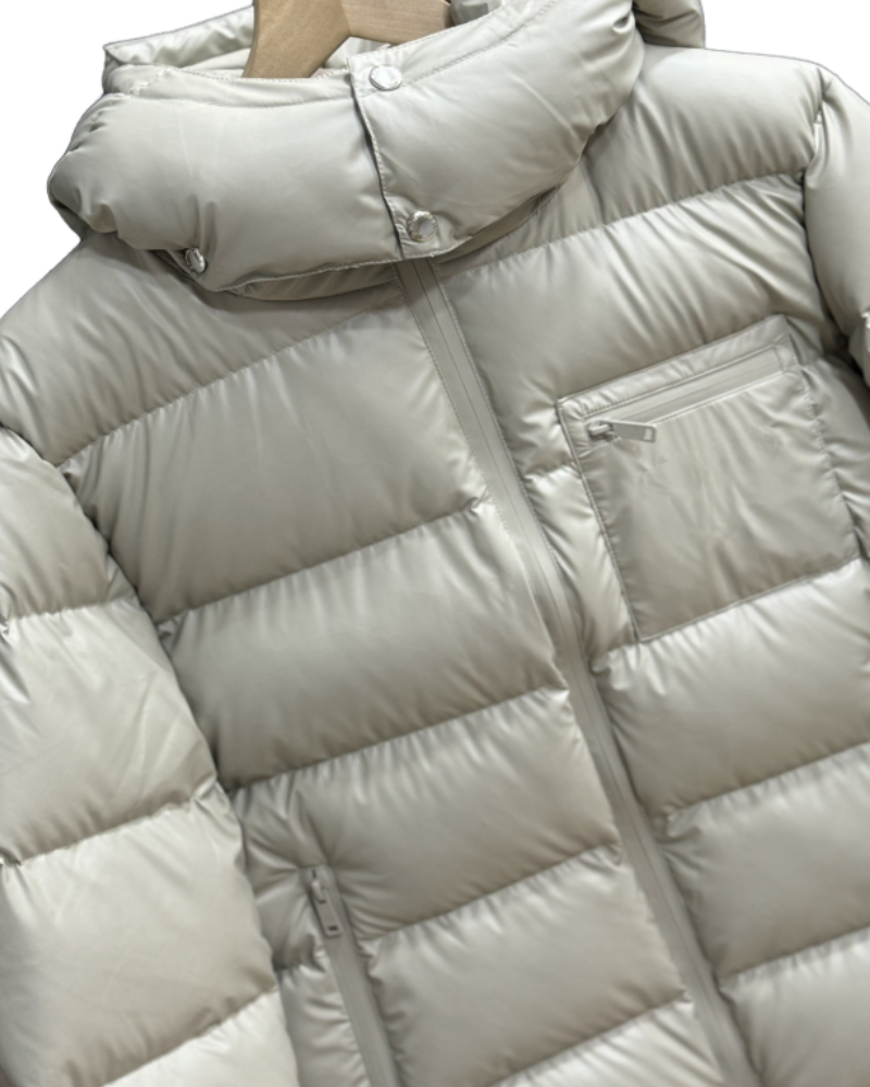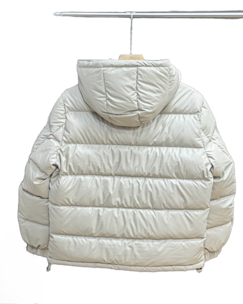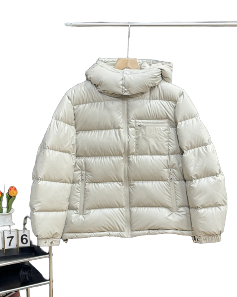Men's Short Hooded Down Jacket | Beige/Black Puffer Coat Winter Warm High-Quality Down Outerwear with Multiple Pockets