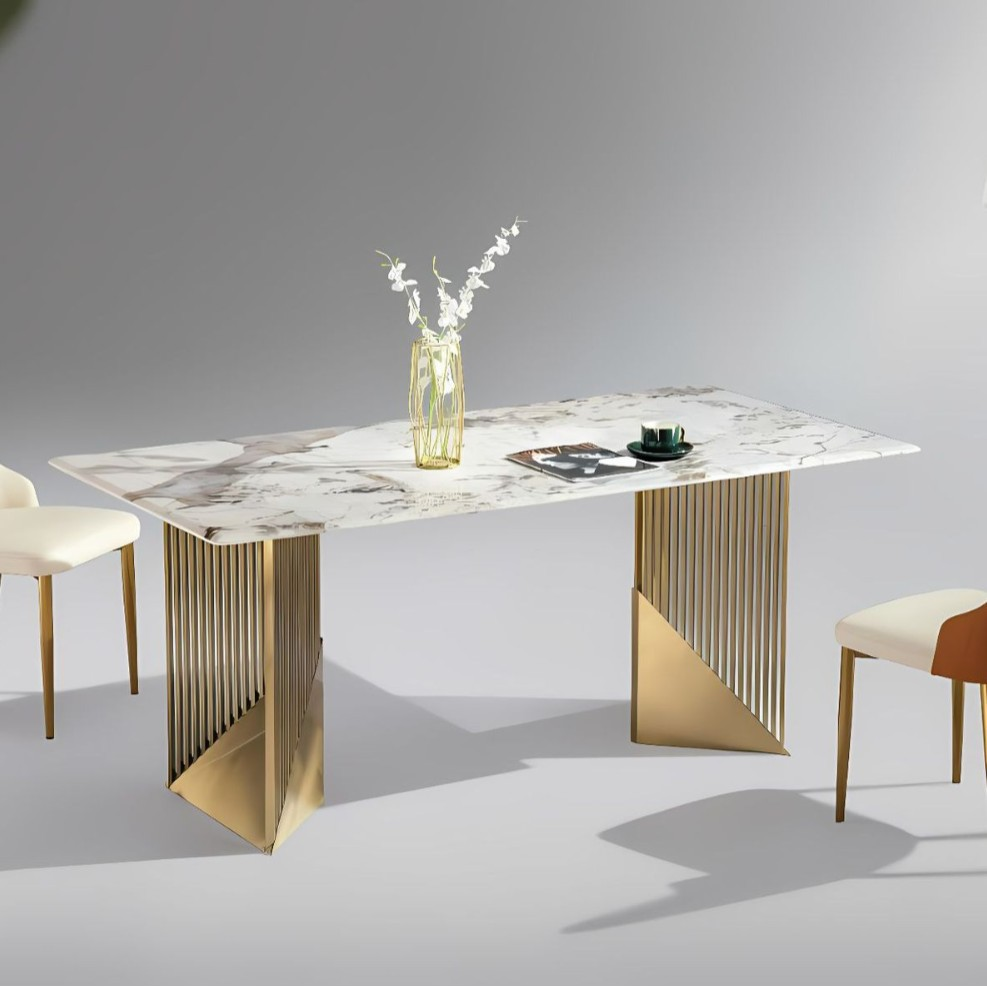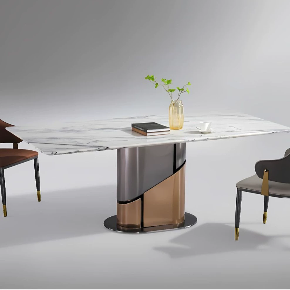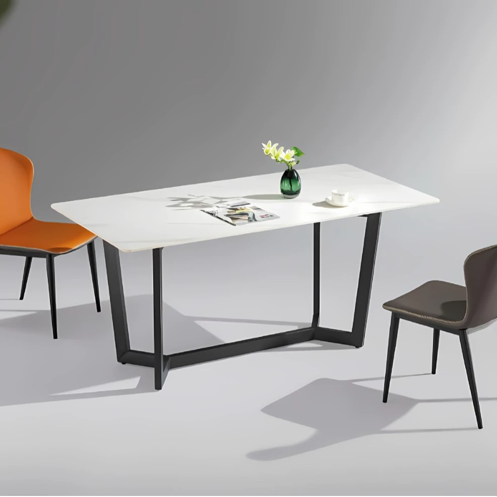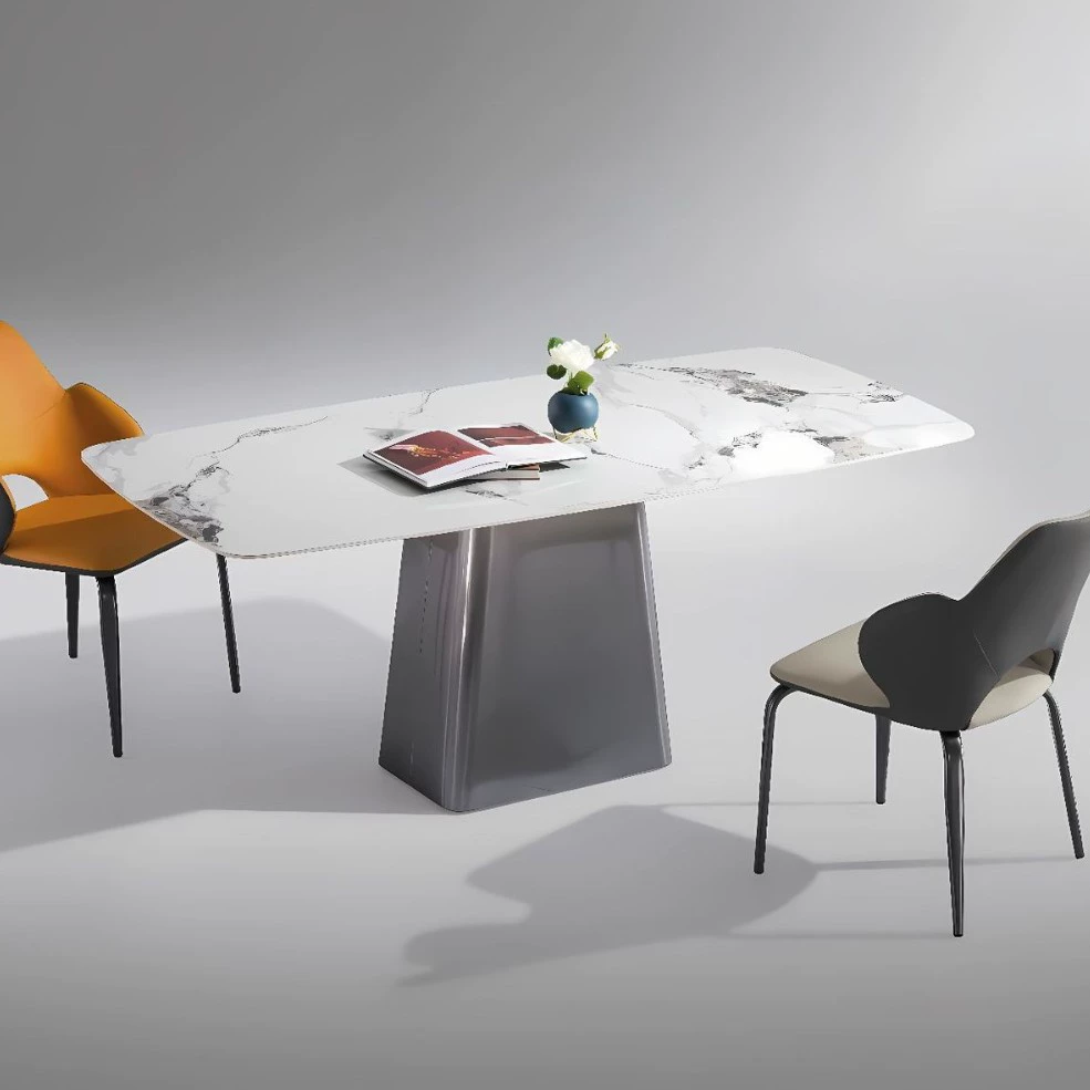 Modern Minimalist Commercial Restaurant Dining Table and Chair Set with Rectangular Sintered Stone Top Stainless Steel Base