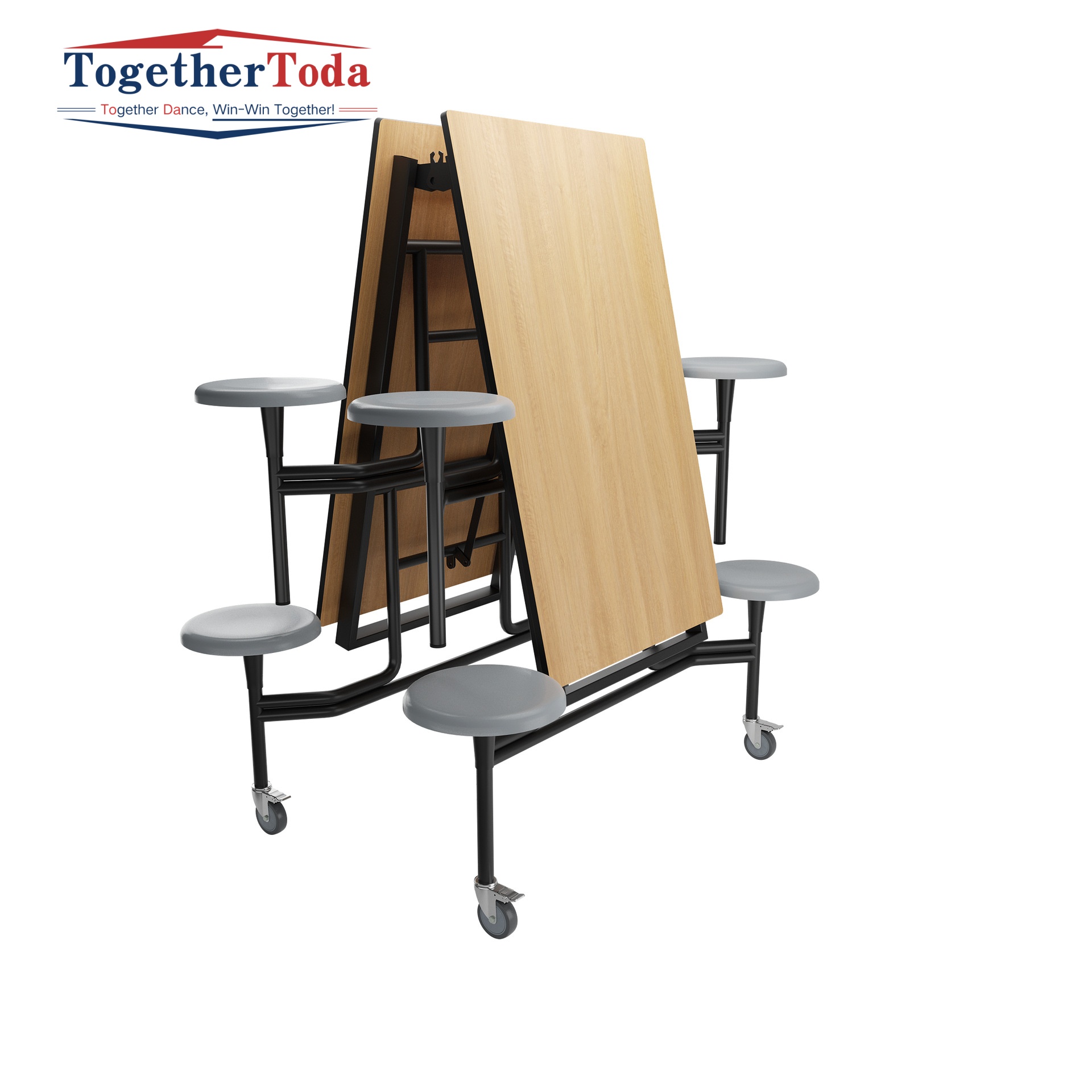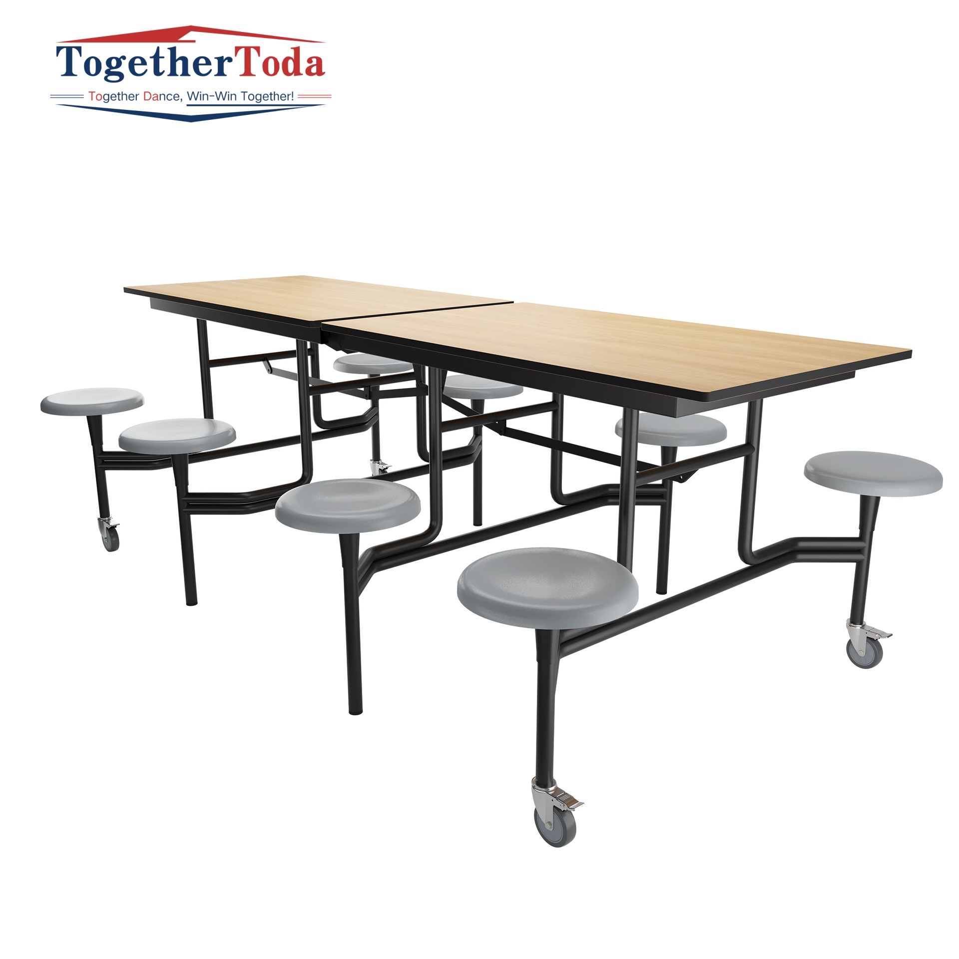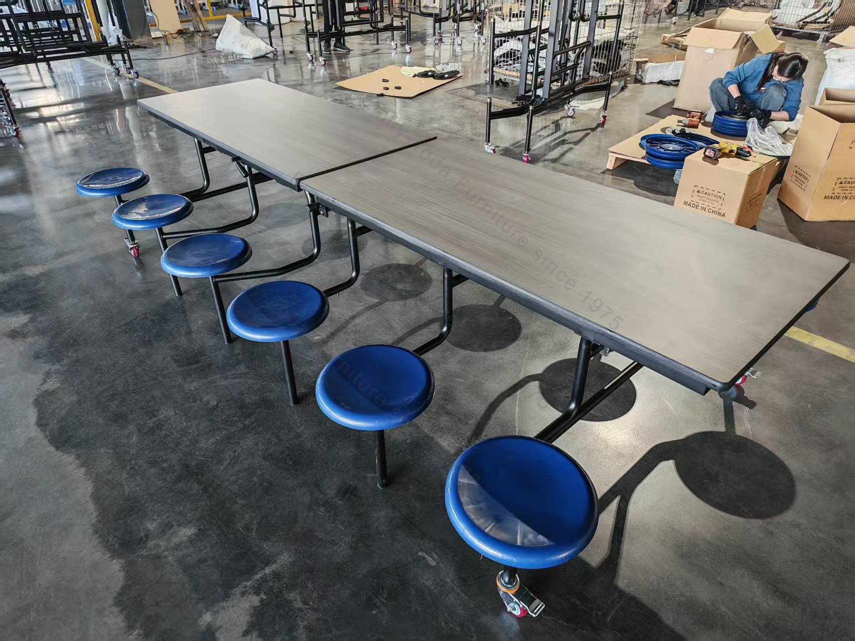 New Custom Metal Foldable Movable Portable Factory Canteen School Restaurant One-piece 12-person Dining Table and Chairs