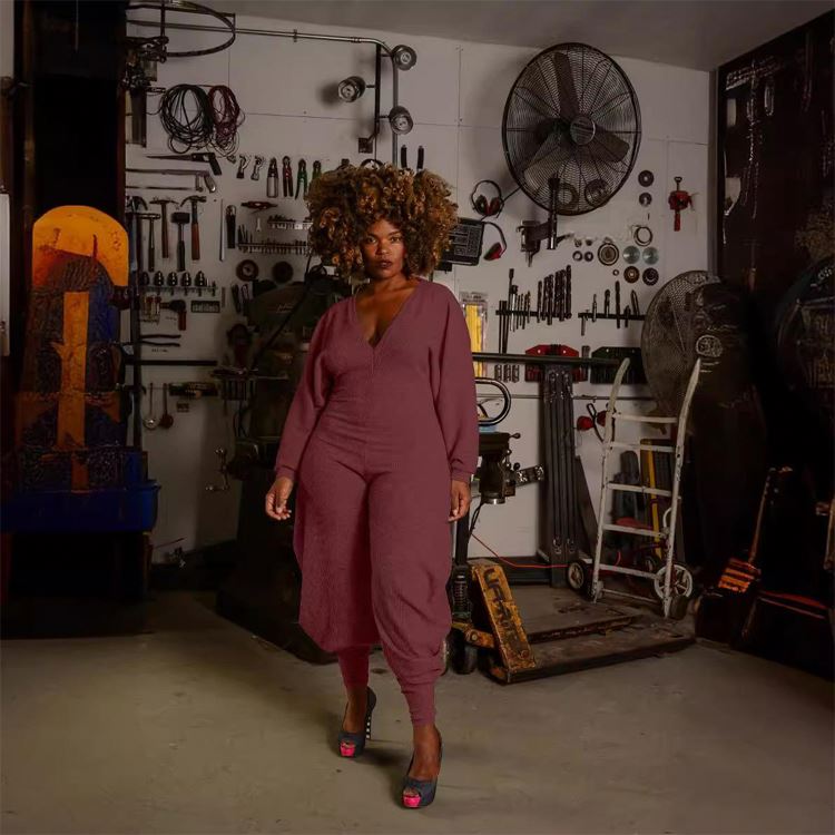 Plus Size Women's Casual Two Piece Sets Fall Slash Neck Tops High Waist Sport Pants Pure Color Loose Suits