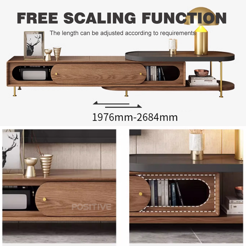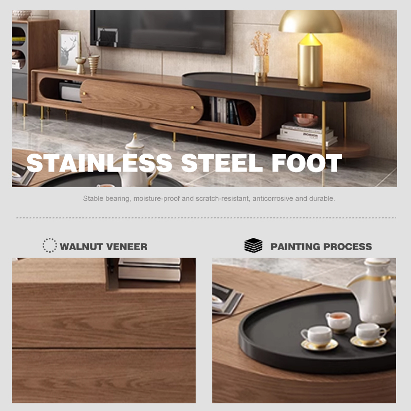 Retro Walnut Color Tv Cabinet Light Luxury Small-Sized Apartment Living Room Home Telescoping Tv Cabinet YT-040