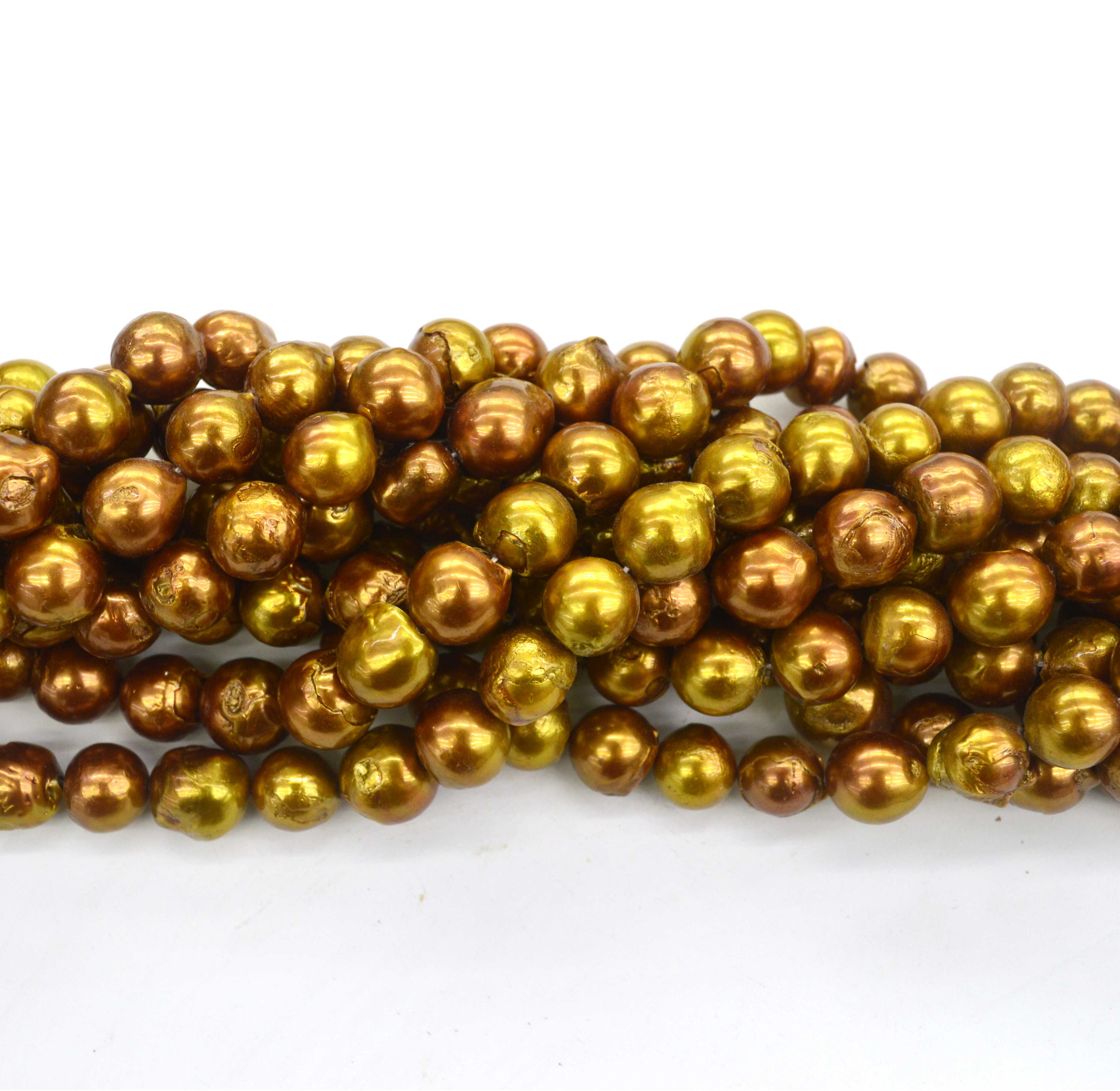 Wholesale Natural Loose Strand Gold Spray Paint Fresh Water Nuclear Cultured Round Pearl Beads Bead for Earring Making