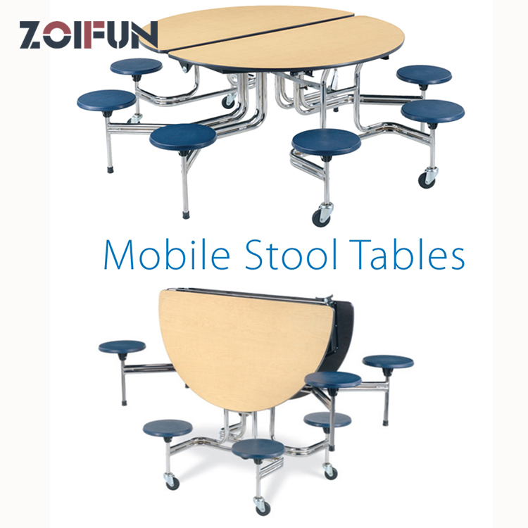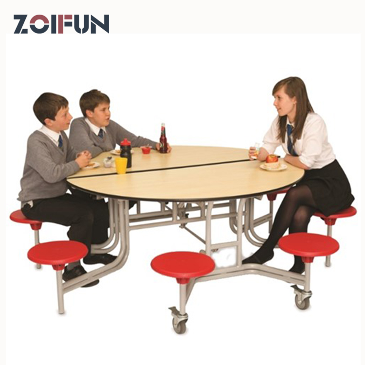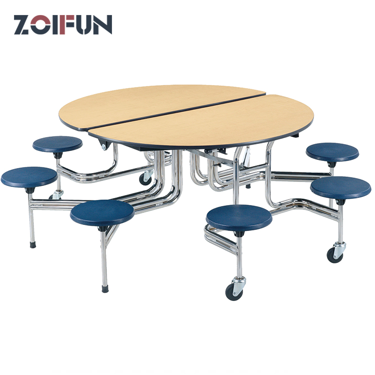 ZOIFUN School Canteen Furniture Chair Table Set for Dining Room and Restaurant 8 Seat Cafeteria Round Mobile Table