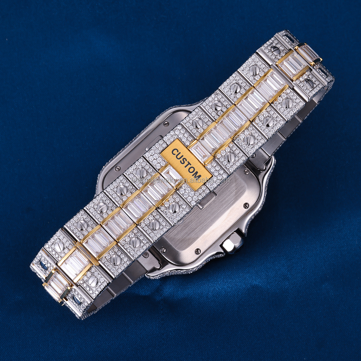 100% Pass Diamond Tester Custom Luxury Bling VVS Baguette Moissanite Watch Hip Hop Iced Out Stainless Steel Mechanical Watches