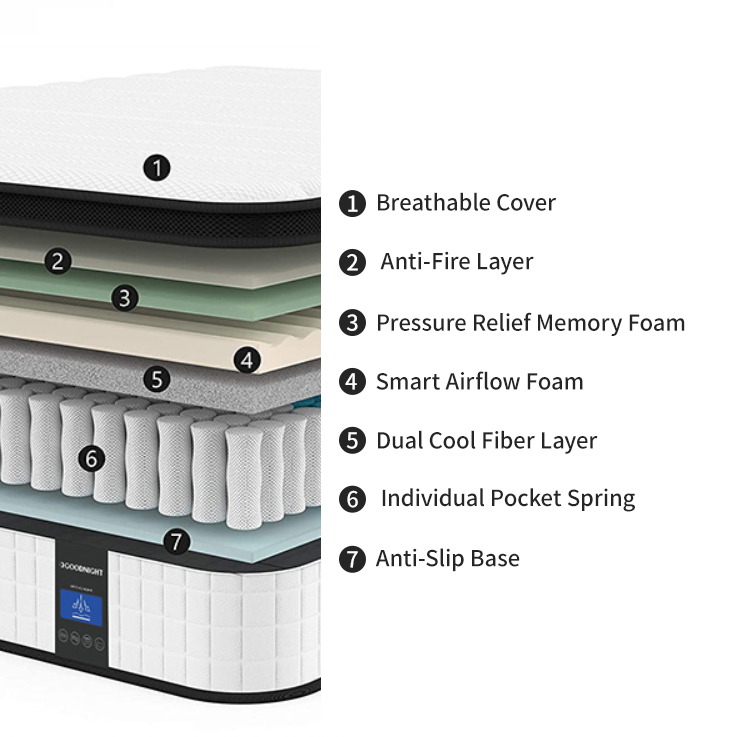 12 Inch 30CM Double Full Size Memory Foam Spring Mattress Rolled Box Pocket Coil Spring Non-Woven Fabric White-for Hospitals