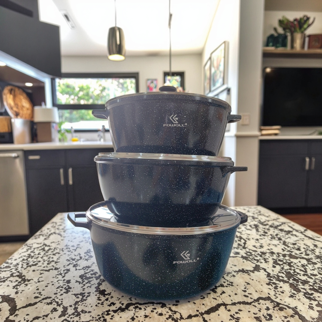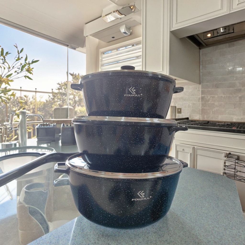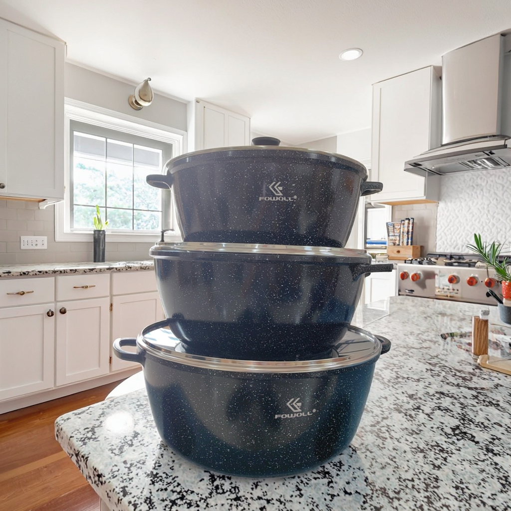 6PCS 36/40/44CM Big Pots Kitchen Nonstick Granite Coating Black Cookware Sets Non Stick Aluminum Cooking Pot Set