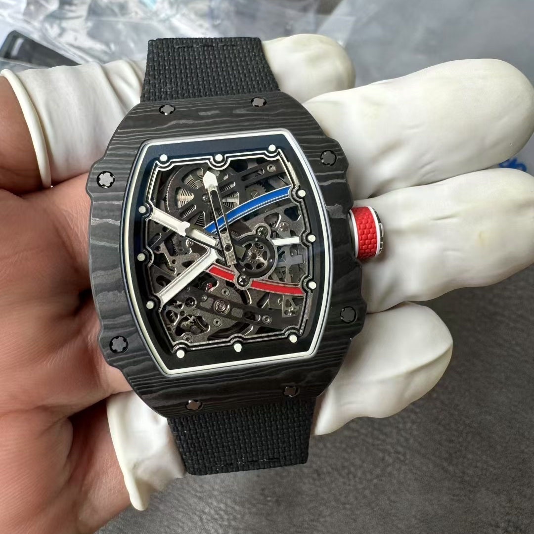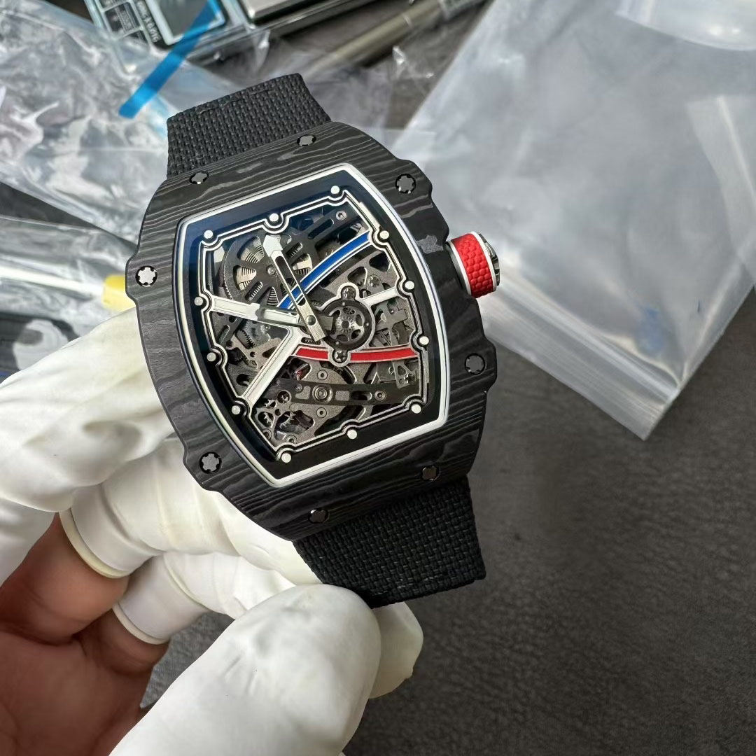 Customized High-End 67-02 Ultra Thin 7.8mm Tourbillon Mechanical Watch Black Dial Carbon Fiber Material Men's Watch