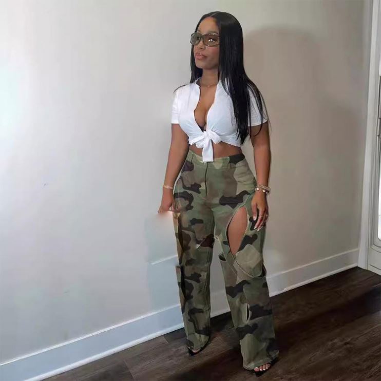Fall New Women's Denim Crop Tops Pants Set Washed Tie Dye Zipper Button Irregular Halter Top Denim Jeans Suit