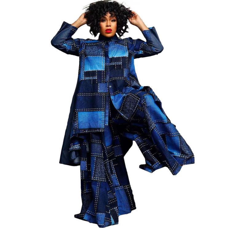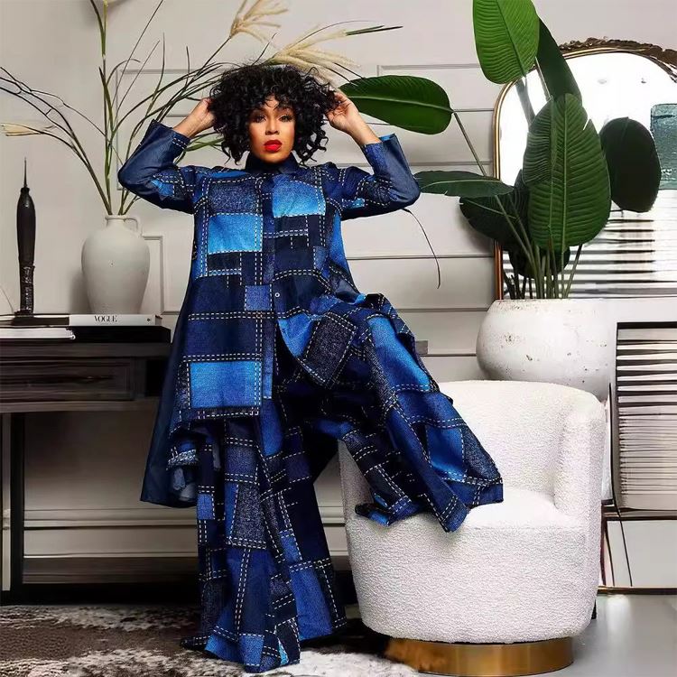 Fashionable Large-Size Women's Suit V-Neck Casual Loose Top Wide-Leg Pants New Two-Piece Set