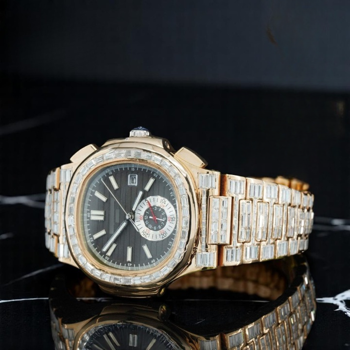 Hip Hop Style Rose Gold Tone Baguette Moissanite Diamond Automatic Watch Quartz Stainless Steel Band for Men and Women Fashion.