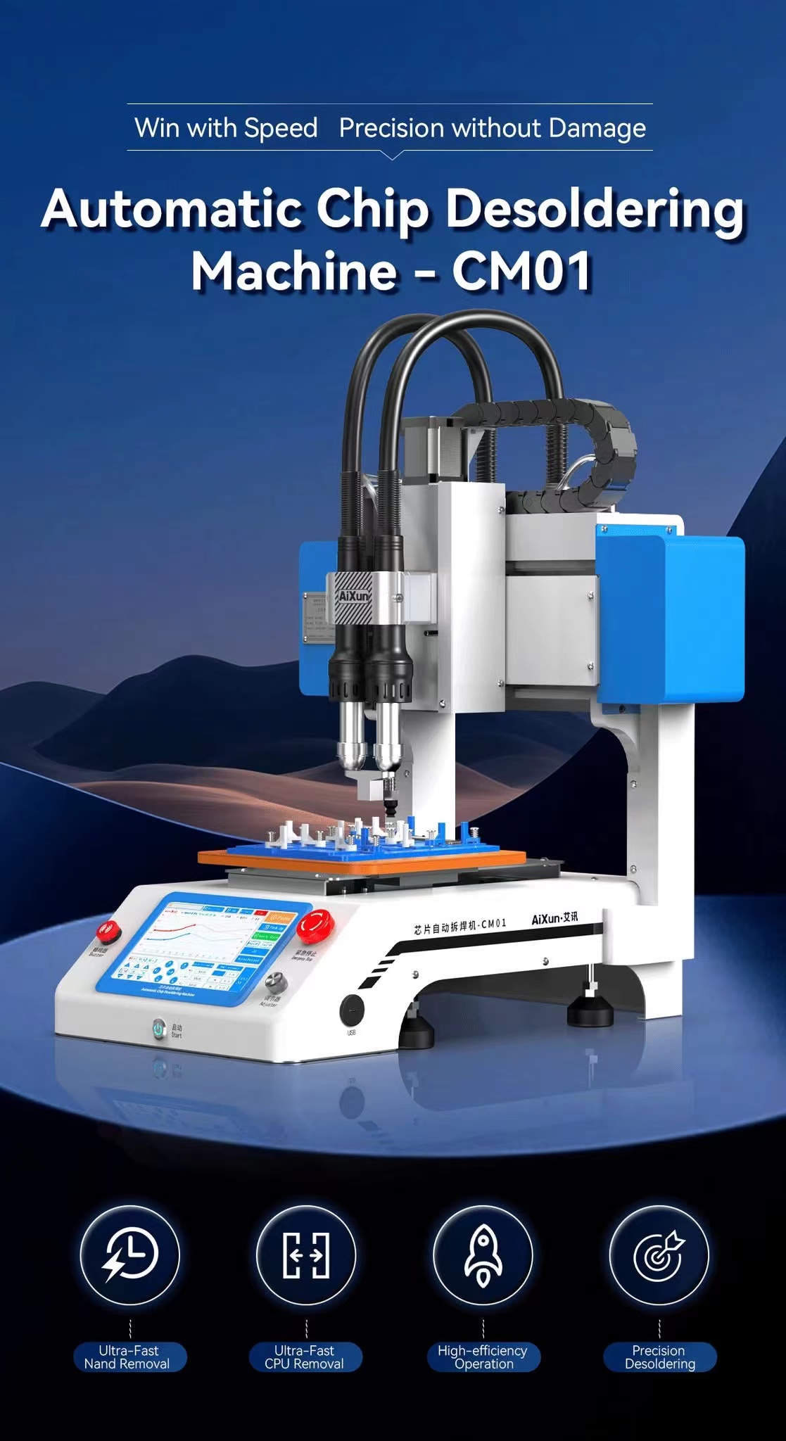 JC CM01 Auto Chip Desoldering Machine Dual Plug Hot Air Guns Single/Dual Mode BGA Chip Repair Moilbe Phone Repair Tool