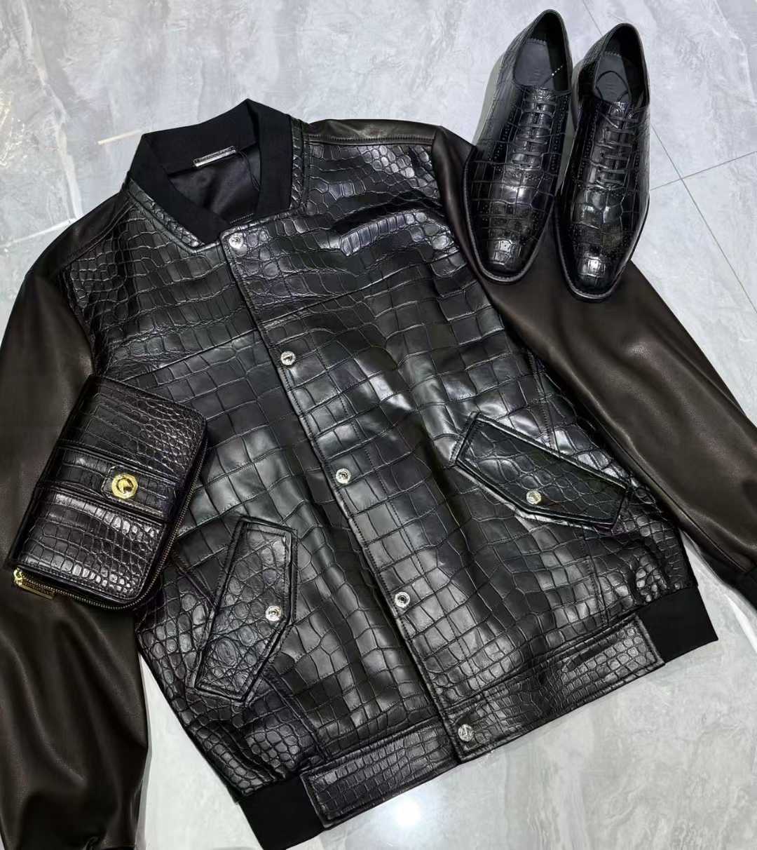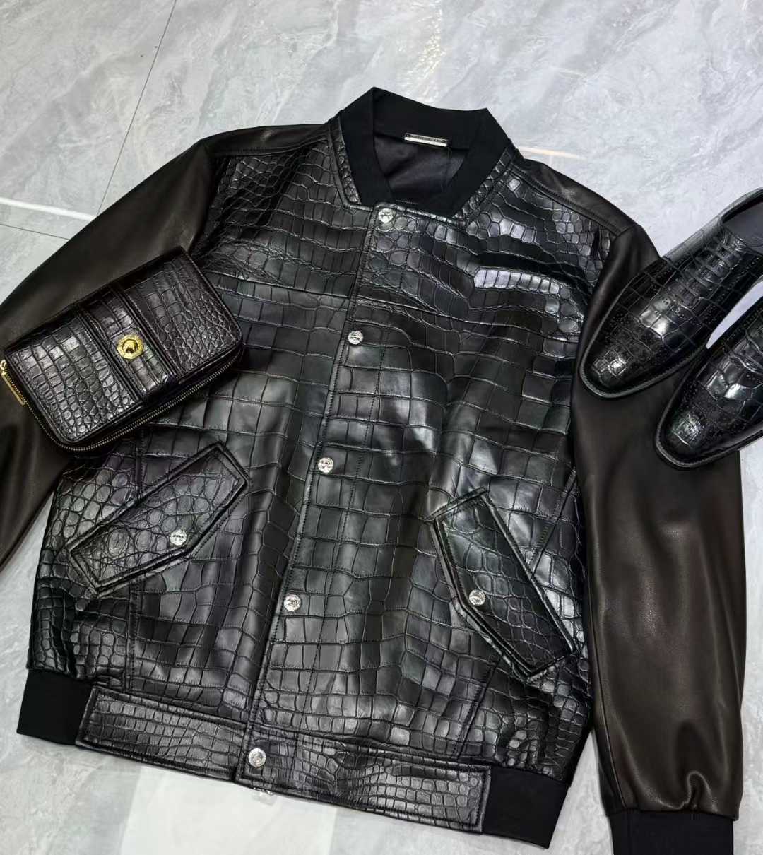 Luxury brand famous design real crocodile genuine leather men's leather jacket hand-sewn factory custom top quality