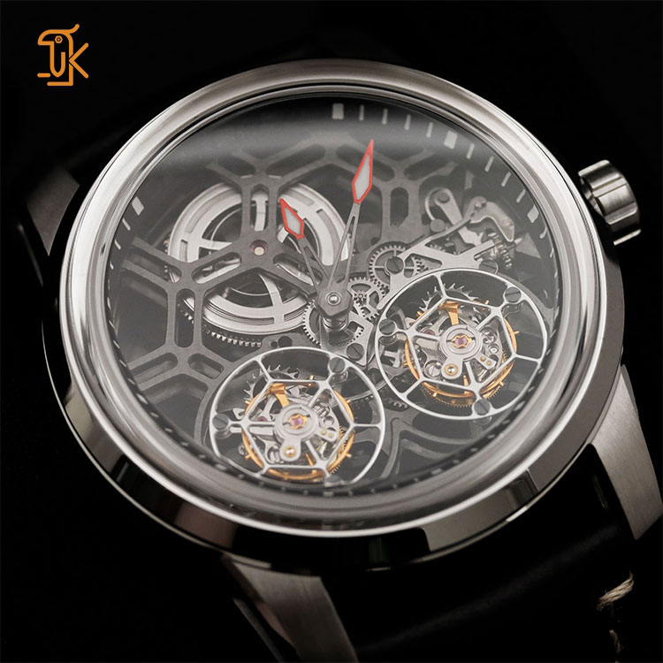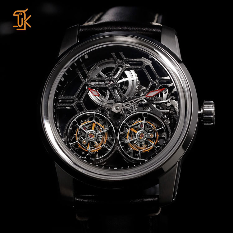 Luxury Men's Skeleton Mechanical Automatic Double Tourbillon Watches with Sapphire Crystal Stainless Steel Leather Power Reserve