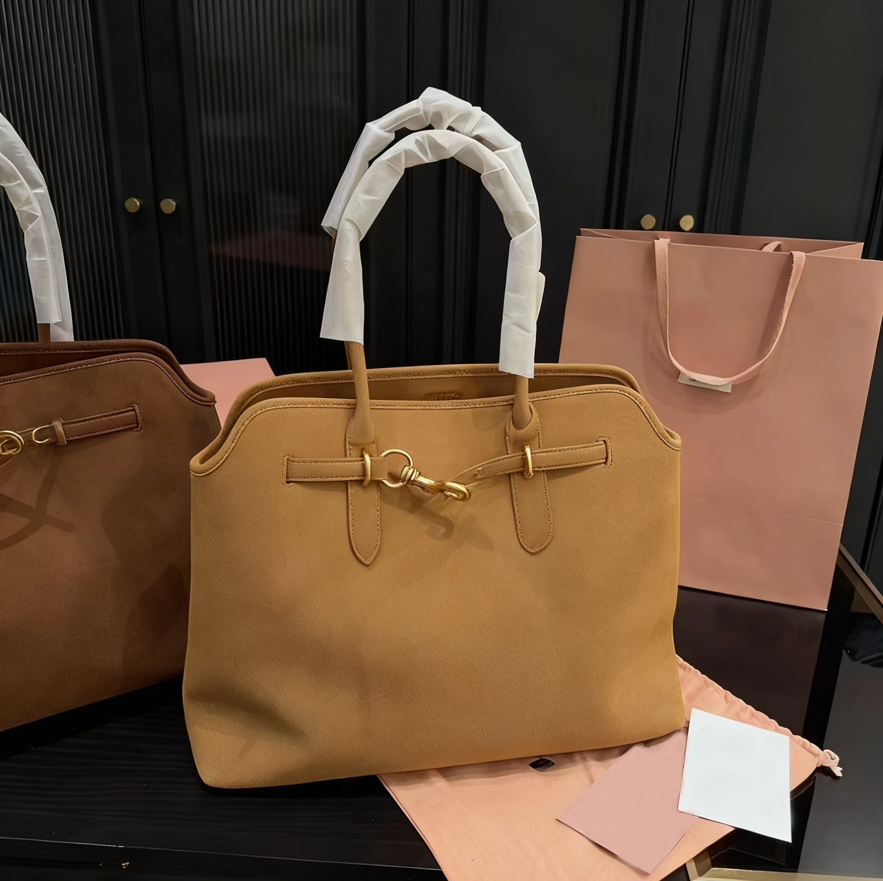 I bought the blue one, and the outer packaging was perfect: a shipping box + plastic bag + eco-friendly cloth bag. The bag itself had thick support inside. The color is exactly the same as the picture