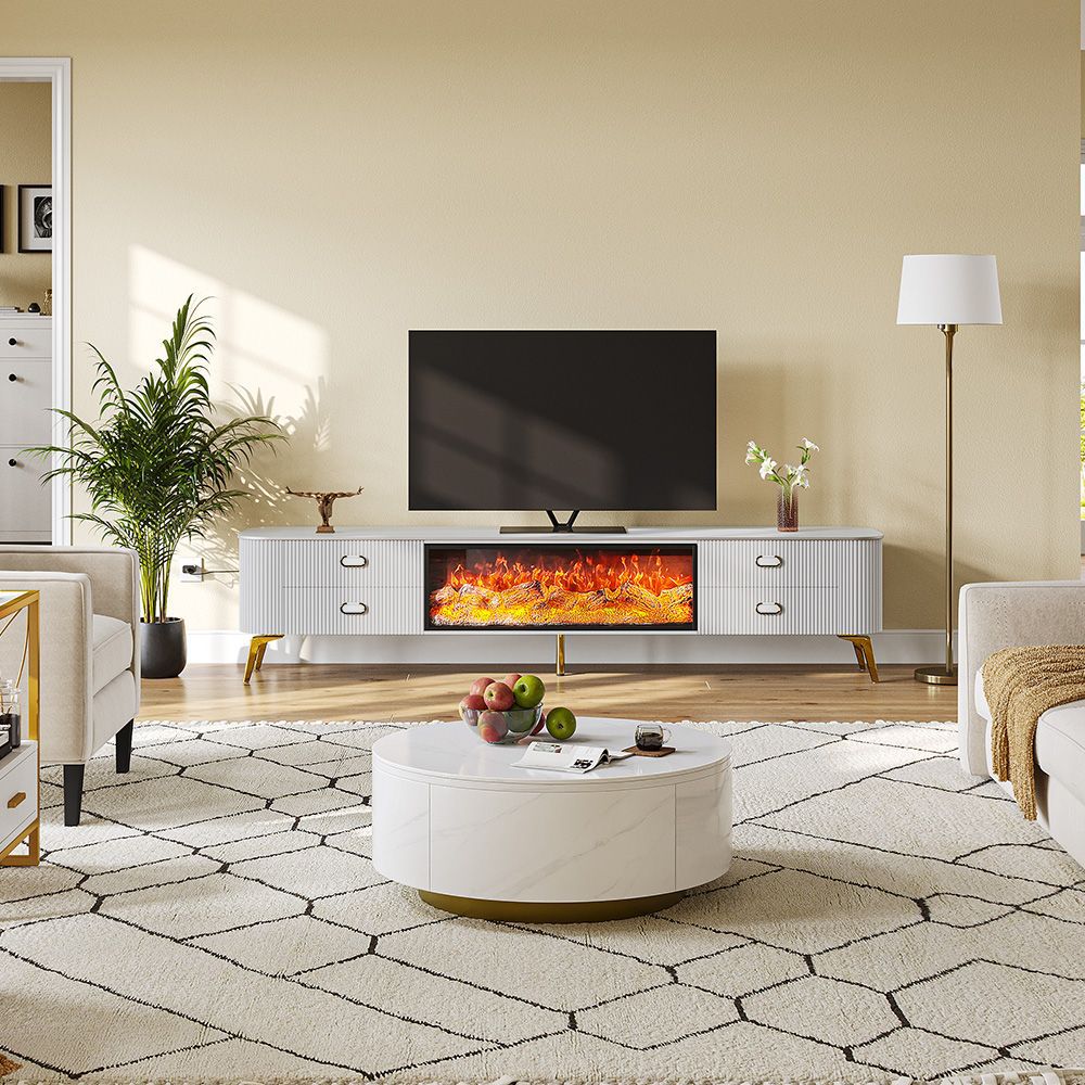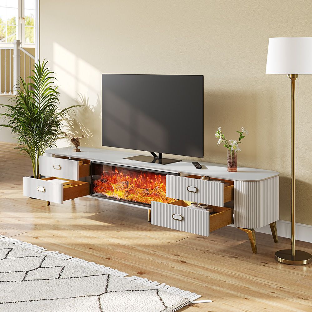Modern 200cm Wooden TV Stand with Storage Cabinet Stone Top & Golden Stainless Steel Decoration for Living Room Furniture