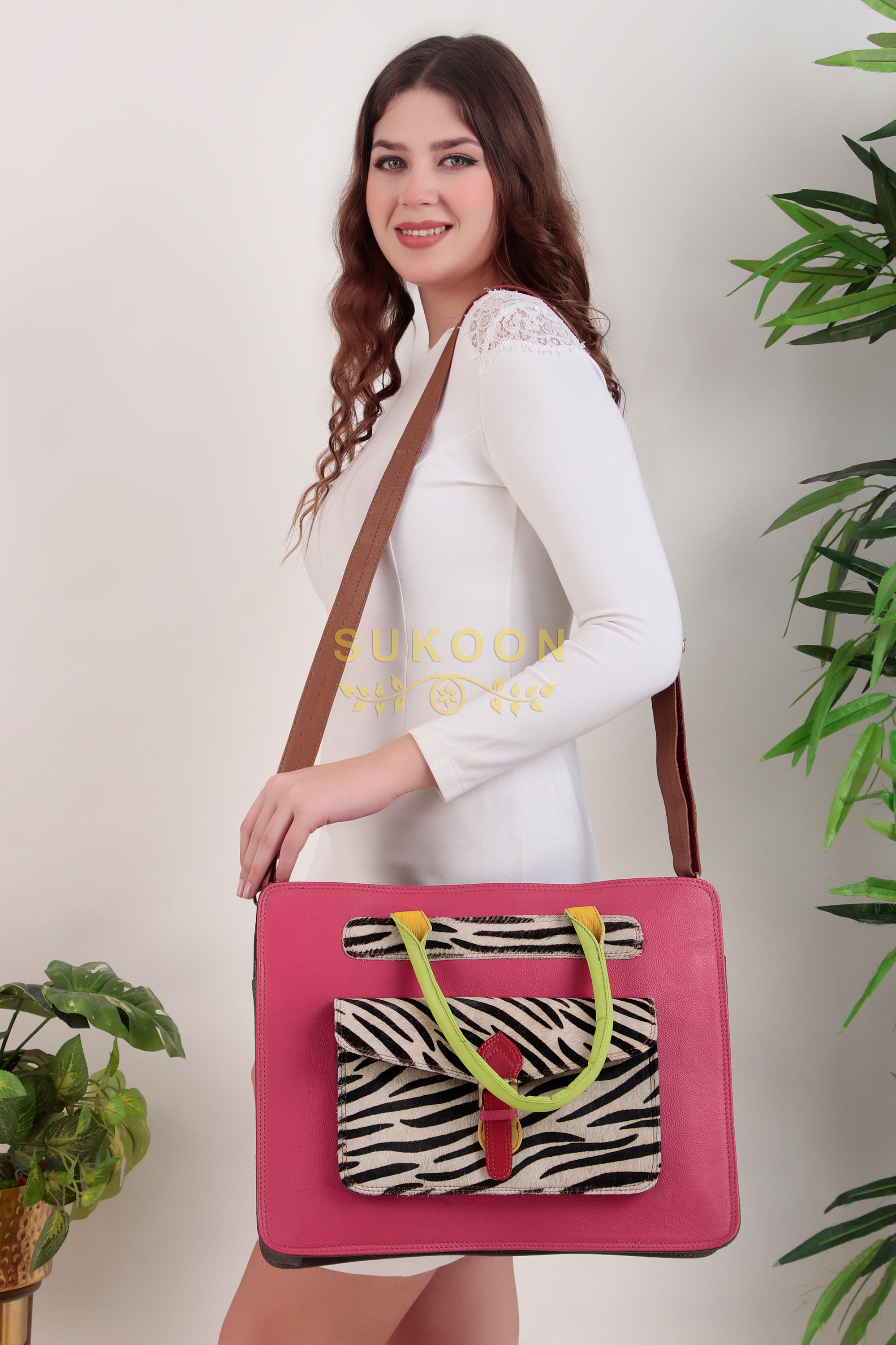 Multi-Color Bohemian Style Recycled Leather Women's Shoulder Bag New Design Office Laptop Messenger Bag Geometric Chains Zip