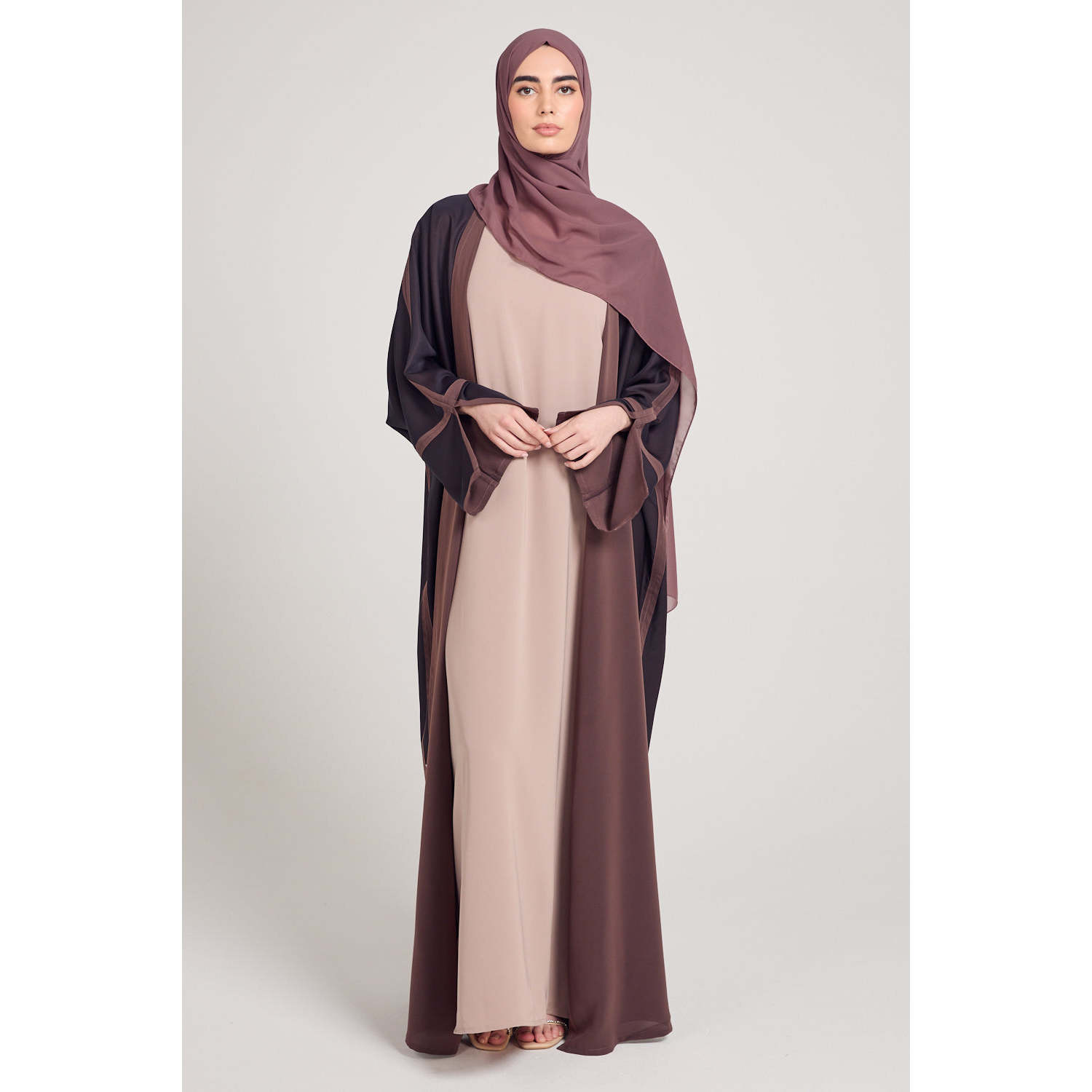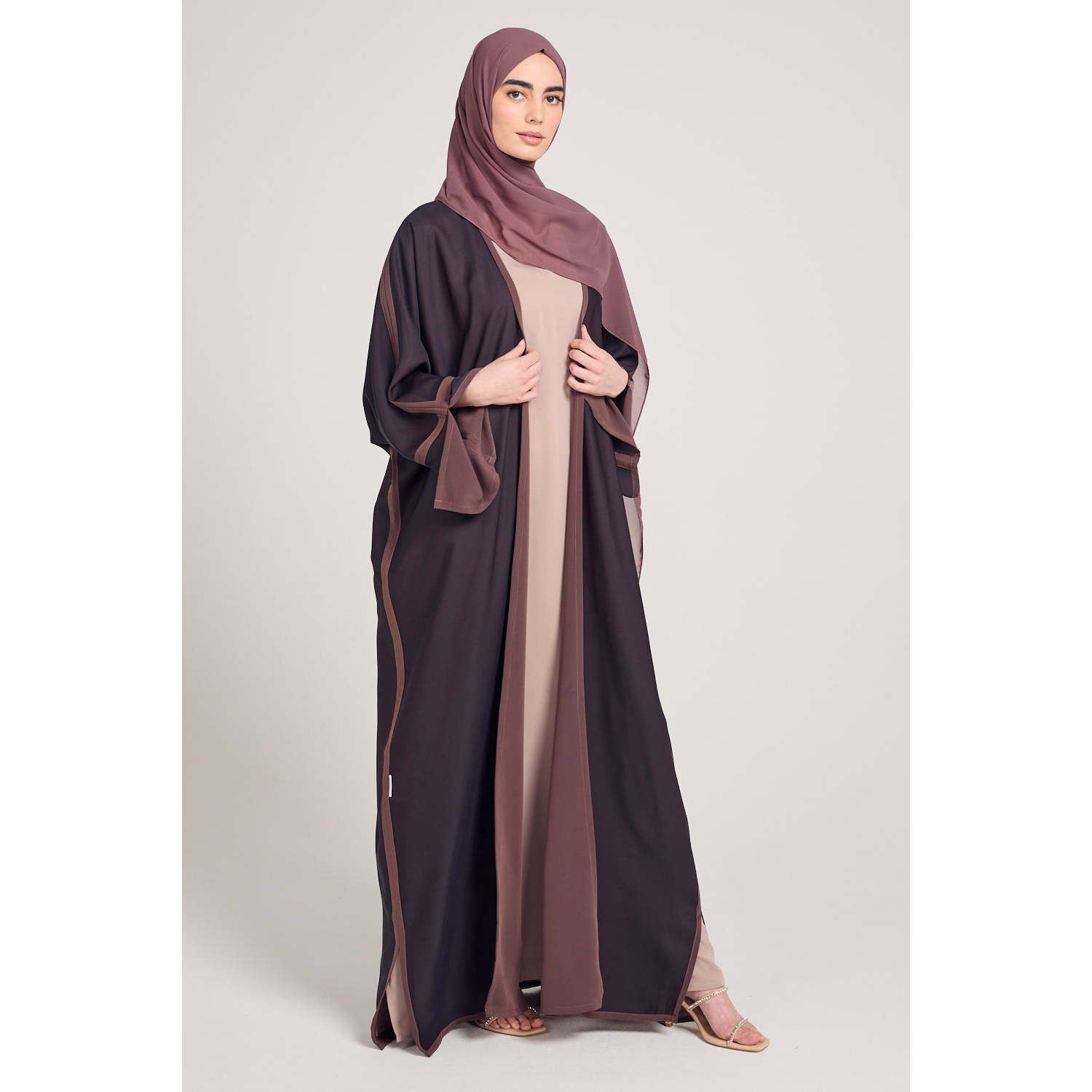 Premium Two Tone Open Bisht Abaya Tiramisu Traditional Muslim Clothing Accessory