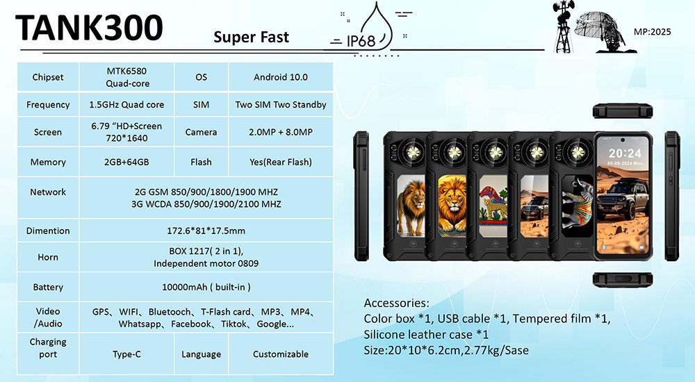Tank 300 6.79inch IPS LCD 2GB RAM 64GB ROM 10000mAh Battery IP68 Waterproof Dustproof Shockproof 3G & 4G Smartphone