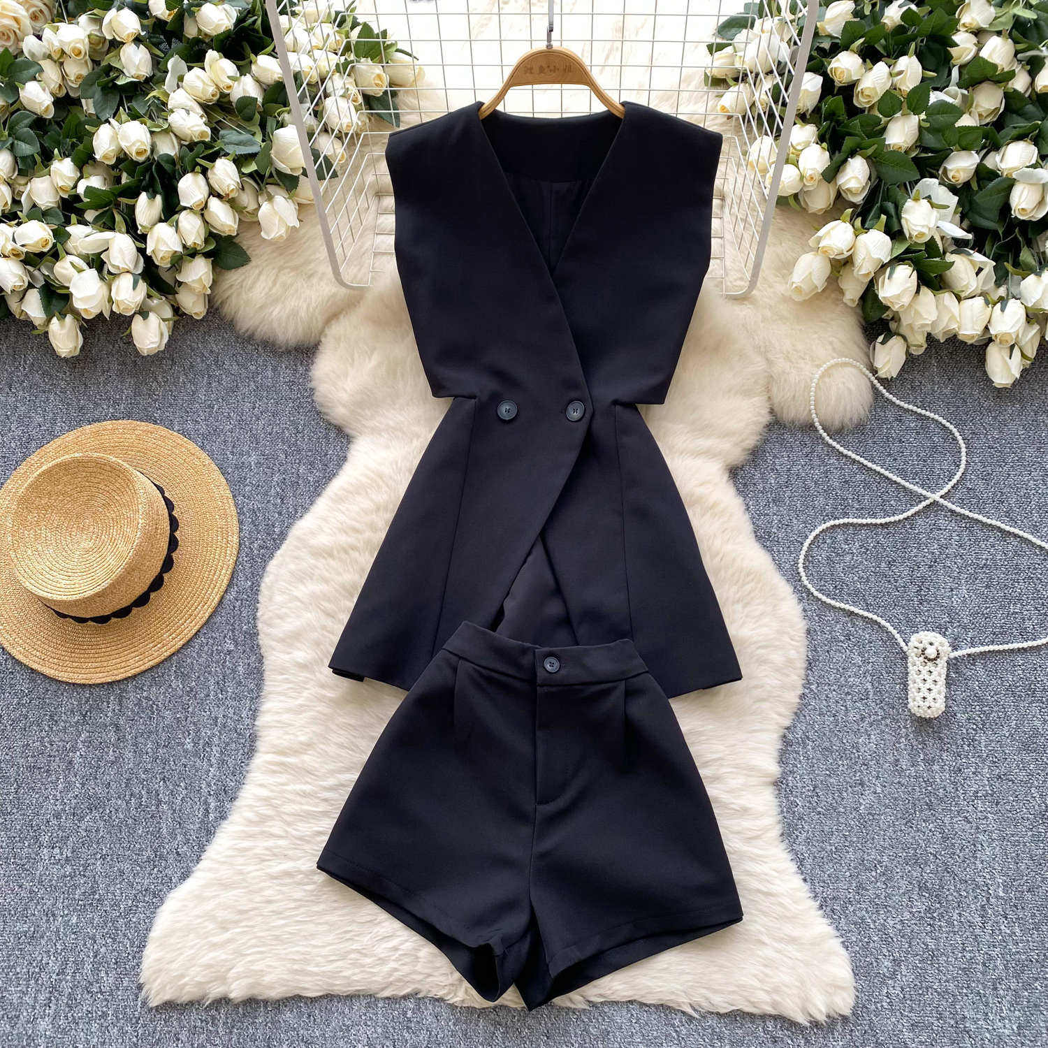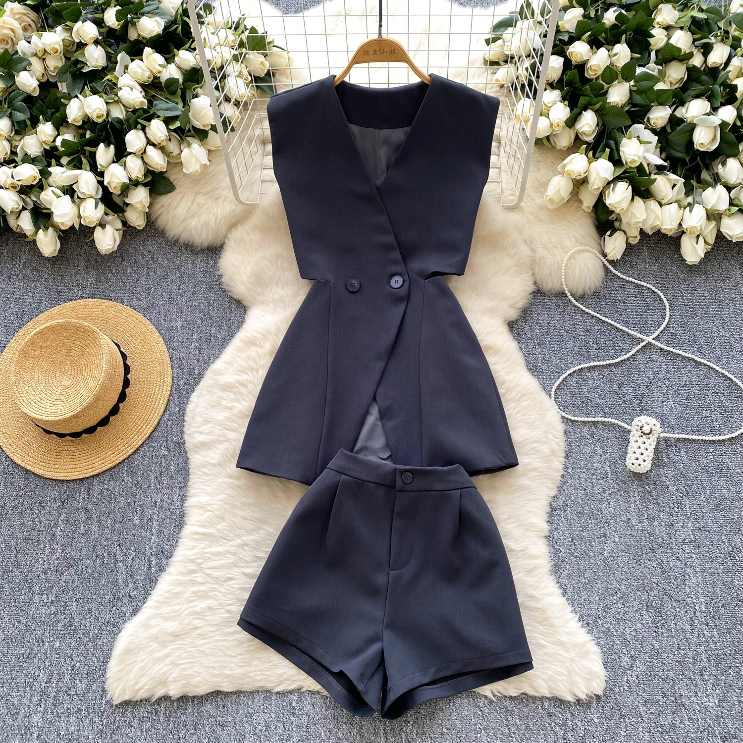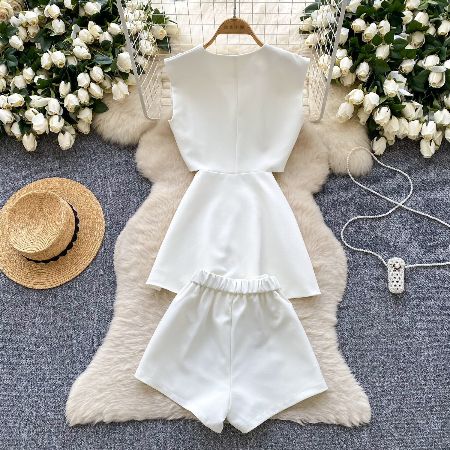 Women'S Fashion Ladies Cheap 2 Pcs Set Sleeveless Vest + High Waist Wide Leg Shorts Set Two-Piece Suit